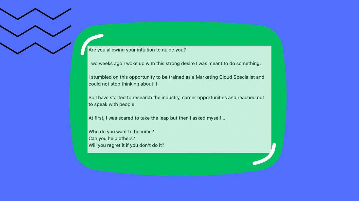 It shapes your strategy, your tone, your positioning, and the way you show up. It tells you what to share, what to emphasise, and which direction to lean toward — long before it makes sense on paper.