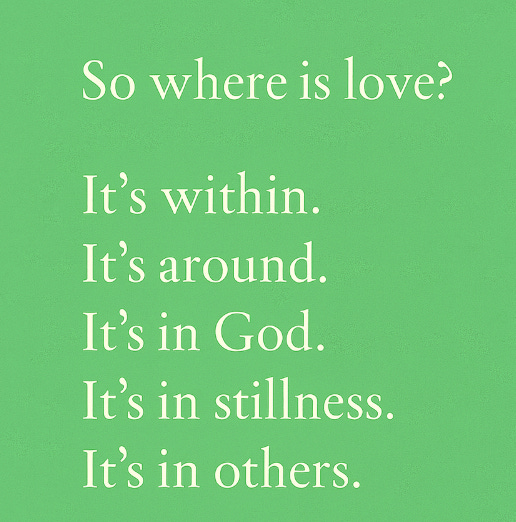 Jenn writes deeply about relationships, self-worth, and embodying love. She left a comment on my recent post that moved me to tears. Later, I read her Substack, What Does a Healthy, Enduring Romantic Connection Look and Feel Like? — a soul-deep reflection on real love. Her words reminded me that love isn’t just something we hope to receive, it’s something we’re invited to become.If you’ve found someone whose work feels like that — reply and let me know. I’d love to read them too.